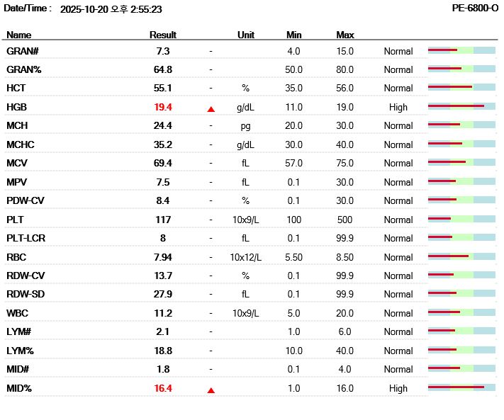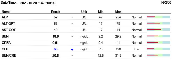 마취 전 혈액검사 결과 / 출처: 미래동물의료센터